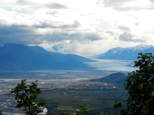 Also at this juncture came the first spectacular view of the day: the Knik Glacier. There’s something really cool, no pun intended, about glaciers. Why are they so blue? How big are the crevasses? These are some questions I hope to have answered during our time in Alaska, and also some questions I asked Kevin as I made him slip-n-slide through the mud to get a better picture, because the vantage point is just better when you’re 6’4″. It’s really too bad I put his life in danger so early on, because they view only got better as we went up.