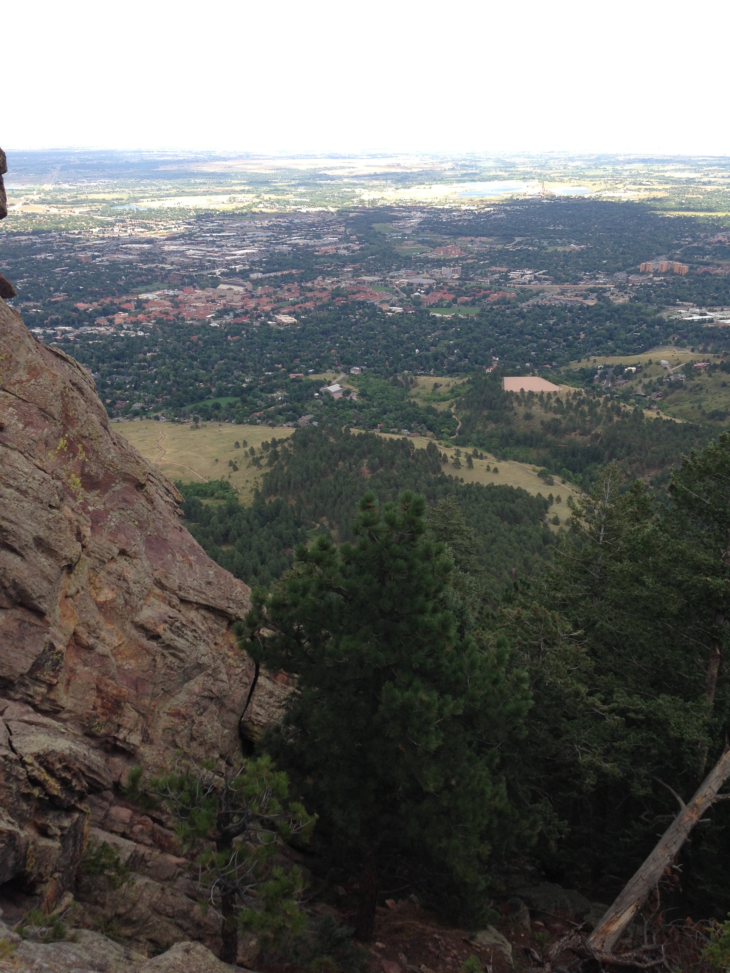 Here things got a little dicey. Moves I hadn’t had to think twice about on the way up now required more precision, more thought. A couple of times I found myself slightly off-route, or at least I assumed I was because I couldn’t see another viable move. Each time, I found my way back to the line I’d come up, feeling a little less confident in my routefinding ability. Once I sat for five minutes, waiting quietly for a group of noisy CU freshmen to pass on the trail below, hoping they wouldn’t notice me and think I needed help.