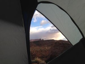 A fine layer of red dust covers everything in the tent. It’s the same scene I imagine would greet campers waking up in the vast red desert on the surface of Mars, were they lucky enough to survive a windstorm there.